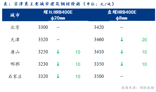 8日北京建筑鋼材市場(chǎng)價(jià)格偏弱運(yùn)行,現(xiàn)河鋼小螺紋3370元/噸,大螺紋3290元/噸,盤螺3420元/噸,成交欠佳。今天期螺震蕩下行,現(xiàn)貨市場(chǎng)情緒較弱,北京現(xiàn)貨價(jià)格穩(wěn)中偏弱運(yùn)行。商家報(bào)價(jià)較昨天部分規(guī)格小幅下調(diào),終端采購(gòu)不積極,期現(xiàn)公司觀望,整體成交欠佳。今日唐山遷安松汀鋼坯報(bào)3080元/噸,下調(diào)20元/噸。昨天夜盤期螺小幅下行,今天上午期螺窄幅震蕩運(yùn)行,早盤商家報(bào)價(jià)較昨天持平,下游詢單較少,期現(xiàn)不活躍,上午成交少。下午期螺繼續(xù)震蕩運(yùn)行,商家小幅下調(diào)部分規(guī)格報(bào)價(jià),下游按需少量采購(gòu),全天成交欠佳。綜合來(lái)看,期螺主力合約繼續(xù)減倉(cāng),震蕩走弱,北京現(xiàn)貨部分規(guī)格資源小幅下調(diào)價(jià)格,下游少量買貨,期現(xiàn)觀望為主,商家心態(tài)平穩(wěn),預(yù)計(jì)下周一市場(chǎng)價(jià)格持穩(wěn)運(yùn)行。
