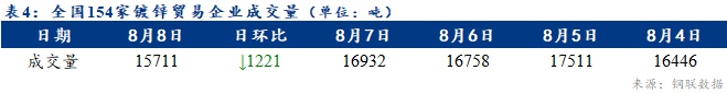 【成交情況】全口徑154家鍍鋅企業(yè)出貨量為15711噸,較上一交易日減少1221噸,減幅7.21%。